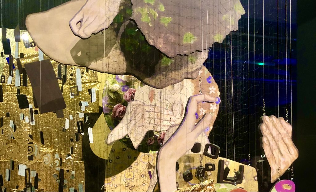 Чудеса начинаются с инсталляции «Поцелуй». 3-х мерная модель самого известного произведения Густава Климта это попытка материализовать нематериальное, разложить на составляющие все слои красок и золота, воздуха и света, идущего изнутри.
