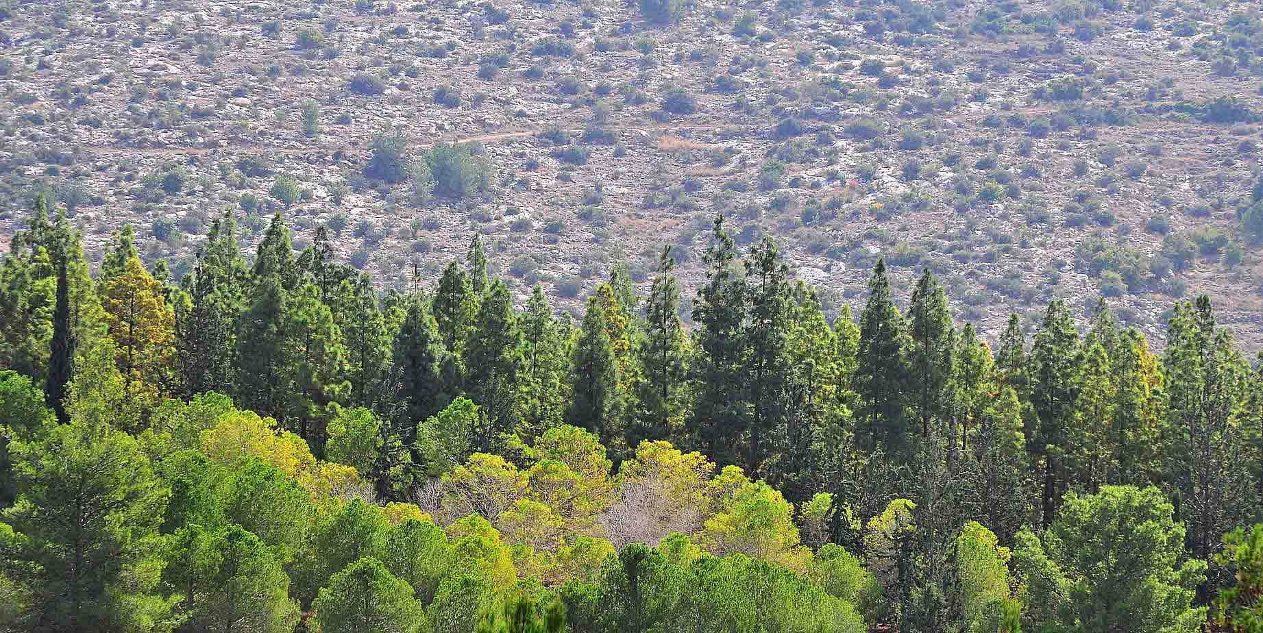 В 2008-м 30% от числа всех сажаемых деревьев составляли сосны, а 70% — широколиственные израильские деревья.